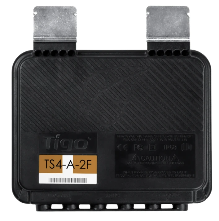 Tigo TS4-A-2F (1400 W / 25 A Isc, MC4, 1000 V IEC) je bezpečnostný add-on modul určený na modulové rapid shutdown podľa noriem NEC 2017/2020/2023. Pracuje so dvoma fotovoltickými modulmi, čím znižuje počet komponentov v reťazci a zrýchľuje montáž.